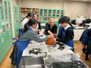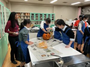 ハロウィンを目前に控えた10月30日(木)の放課後、中1~高2の希望者でジャック・オー・ランタンづくりをおこないました。
