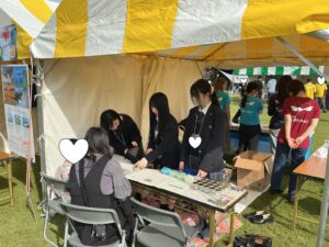 グリーンチャレンジデーとは、SDGsを意識しつつ、地球環境に負荷をかけない、持続可能なライフスタイルを考えるイベントです。多くの自治体や企業が参加して、それぞれのブースでエコな暮らしを意識した様々な催しを開催していました。本校から参加した生徒たちは3グループに分かれ、「アロマキャンドルづくり」「牛乳パックを使ったランタンづくり」「チラシビーズで作るキーホルダーづくり」の3つのブースを運営しました。それぞれ、節電を意識するきっかけや不用品からおしゃれを生み出す工夫に結び付けば、との思いから約半年かけて計画した企画でした。