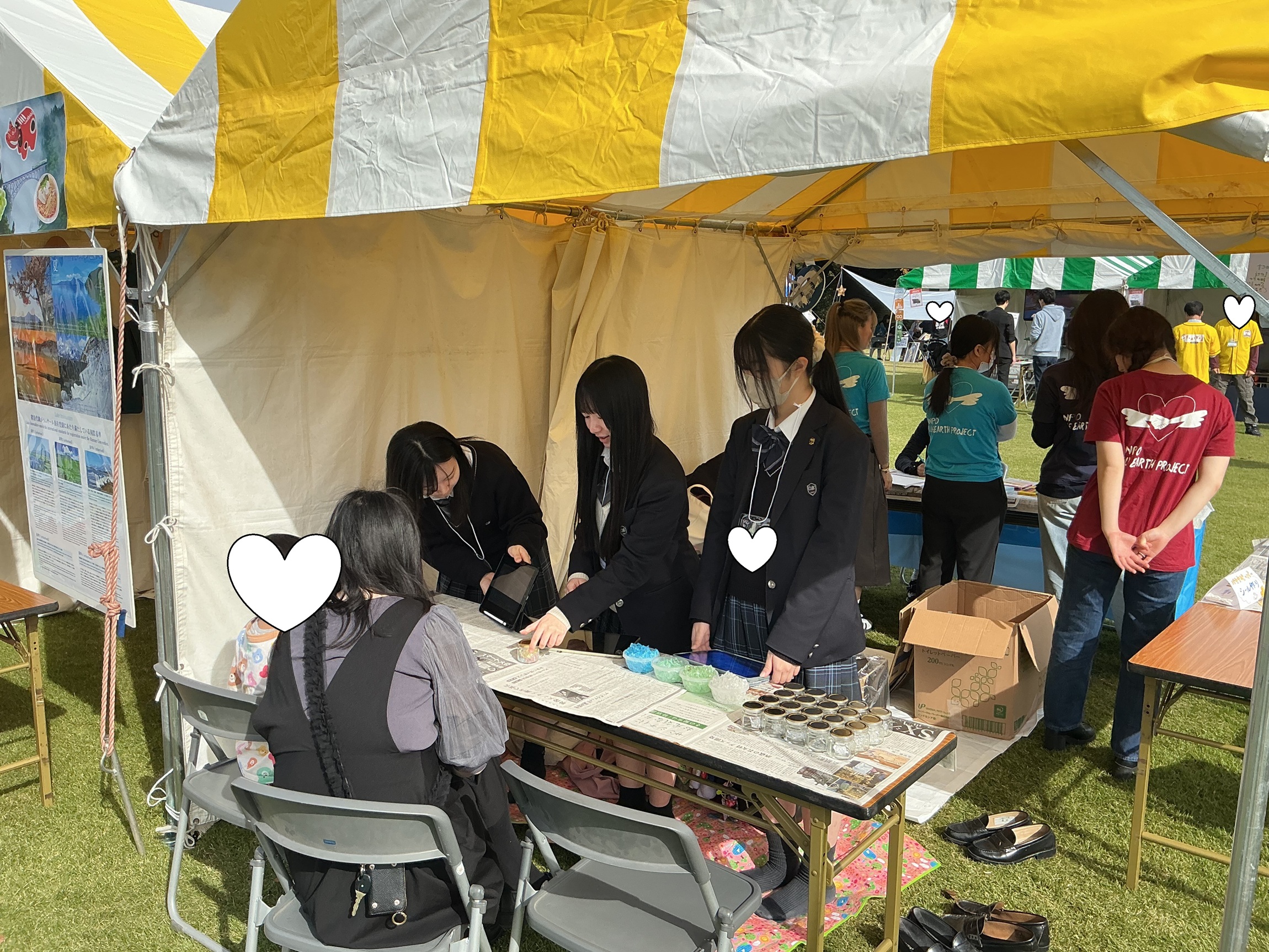 ブルーアースとは、「女子高生が世界を変える」をキャッチャフレーズに活動する環境問題の啓発団体で、全国各地の高校が参加しています。本校は、4月に新年度のメンバー募集を行い、5月にエコ・レクチャーを受講、そこからグリーンチャレンジデーに向けた企画を考え、試行錯誤しながら半年間活動します。どのブースも、想定以上のお客様を迎え、用意していた材料を全て使い切っていました。生徒たちは、半年かけて作ってきたものが形になって嬉しかったようです。一方で、もっとコンパクトに説明をまとめられたら、という反省点も残ったようで、来年度以降に生かしていけたら、と考えています。