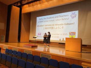 12月19日(金)に、マレーシアのジョホールバルより、SMK SULTAN ISMAILの皆さんが本校を訪れました。実は両校には、大切な「約束」がありました。今年8月、本校の生徒たちがシンガポール・マレーシア研修で同校を訪問した際、素晴らしいおもてなしを受けたのです。今回は、今度は私たちがホストとなってお迎えする番。玄関で4ヶ月ぶりの再会を果たし、笑顔あふれる交流がスタートしました。